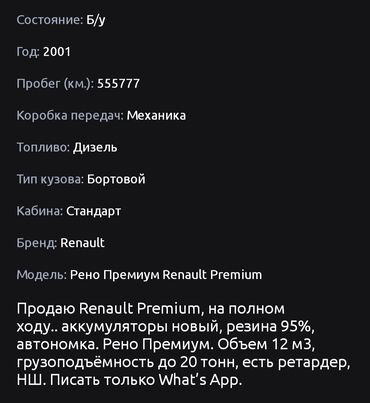 Срочно сатам горит🔥 Озумо 12$ турган Акча керек ошого сатып жатам! Окончательно 10$ без торг! Рено Мидлум 2001 ж Обьем 6.2 6 ступка горный бар Борт узуну 7 м Туурасы 2.50 Манипулятор койс...