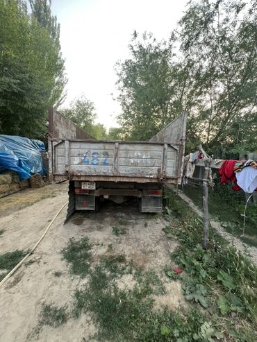 Самосвал с оранжевым кузовом, предназначенный для перевозки сыпучих материалов. Оснащен двойными задними колесами для улучшения устойчивости и грузоподъемности. Задние фонари и брызговики обеспечив...
