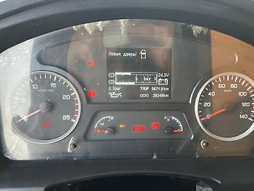 - Бортовой компьютер: контроль давления в пневмосистеме (шкалы до 12 бар), напряжение бортсети 24,3V, индикация открытых дверей и сервисных предупреждений