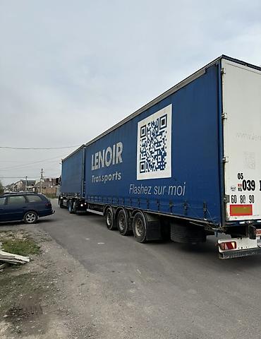 - Компоновка: автопоезд — тягач с прицепом/полуприцепом в едином стиле (синие тенты)