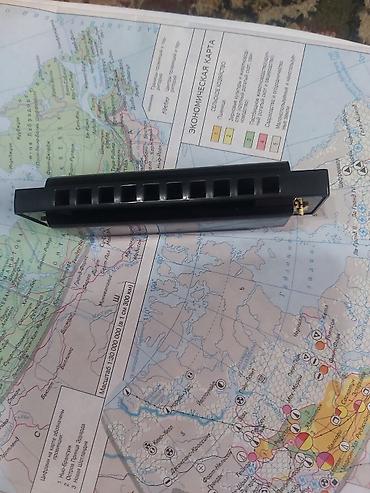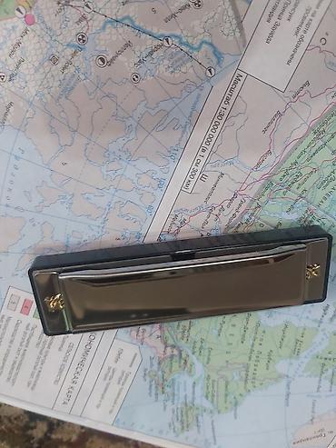 Губная гармошка. Новая в упаковке. есть 2 штуки чёрного и серебристого цвета. цена по1500сом.