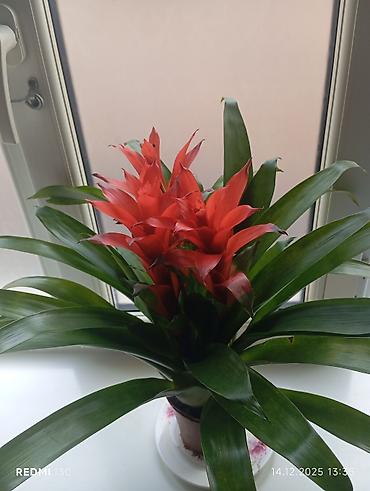 - Яркое тропическое комнатное растение из семейства бромелиевых с эффектным красно-оранжевым прицветием.