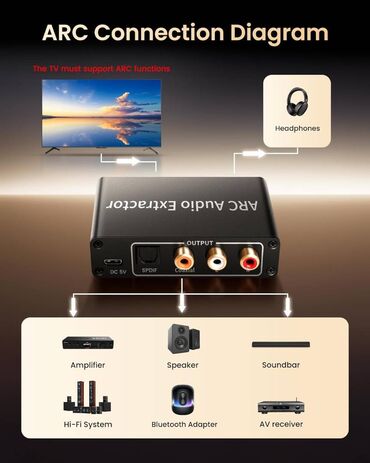5. Широкая совместимость:Конвертер для аудио совместим со всеми HD-телевизорами, звуковыми системами, динамиками и усилителями с поддержкой ARC, поддерживает оптические, коаксиальные, RCA и аудио интерфейсы 3,5 мм для плавной интеграции и превосходного качества звука.