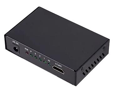 HDMI-сплиттер 1x4 с усилением, версия HDMI 1.4 Особенности: - Разветвление одного HDMI-источника на четыре дисплея одновременно: 1 вход HDMI, 4 выхода HDMI (OUTPUT 1–4). - Поддержка до 1080p и 3D ...