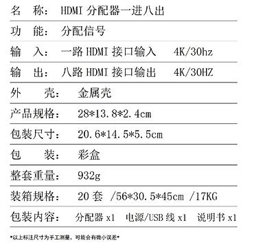 HDMI video splitter, HDMI synchronous splitter, HDMI one-in-eight-out splitter, HDMI splitter
