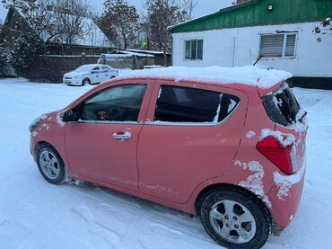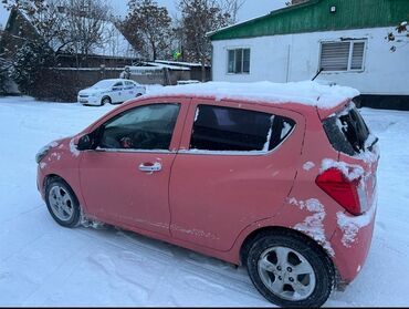 Chevrolet Spark, хэтчбек, 5 дверей, передний привод. Компактный городской автомобиль в ярком розовом цвете кузова.