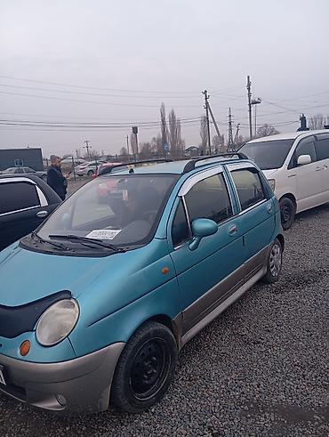 Компактный городской хэтчбек Daewoo Matiz, 5 дверей, голубой металлик с серыми нижними пластиковыми накладками. Практичный салон с пятью посадочными местами, высокие двери для удобной посадки, большие окна и хорошая обзорность.