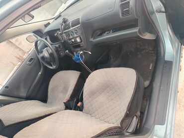 Honda Civic, седан, темно‑синий цвет кузова. Салон темный, с чехлами на сиденьях (комбинация черного и синего), тканевые/велюровые вставки, коврики-соты. Руль с оплеткой, автоматическая коробка пер...