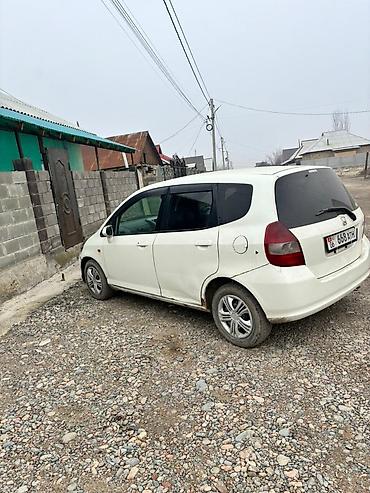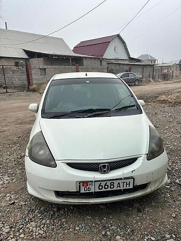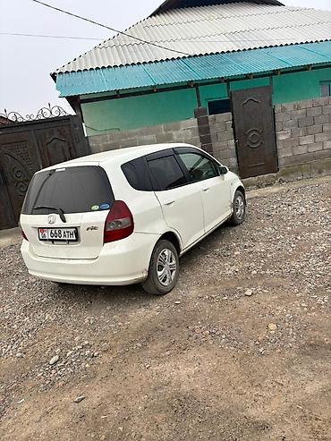 Практичный, манёвренный, удобен для города и поездок за город за счёт высокого потолка и трансформации салона. Номерные знаки KG 06. Цвет кузова: белый. Модельная эмблема Fit на корме.