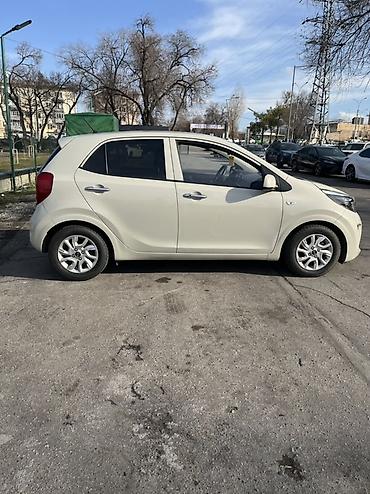 Kia Morning (Picanto) — городской 5‑дверный хэтчбек в светлом бежевом цвете.
