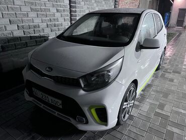 Kia морнинг(хэтчбек) белого цвета с контрастными неоново‑лаймовыми акцентами.