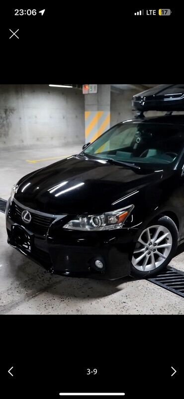 Lexus CT 200h, хэтчбек премиум‑класса с гибридной установкой. Черный цвет кузова, фирменная решетка Lexus,светодиодные ДХО и противотуманные фары. Легкосплавные диски.