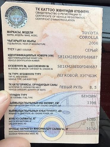 Toyota Corolla: 2006 г., 1.4 л, Механика, Бензин, Хэтчбэк