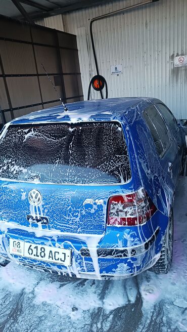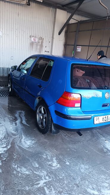 Volkswagen Golf (хэтчбек, 5 дверей), синие металлик. Европейская версия с задней дверью багажника и вертикальными фонарями. Номерные знаки KG.