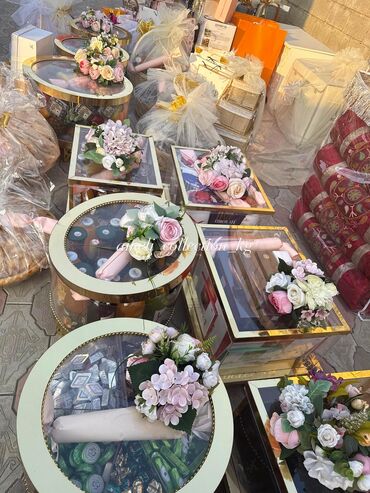 Декоративные корзины, себеты. Себет. - Форма: круглые и квадратные модели. - Назначение: для подношений/гунч, сладостей, угощений, подарков, свадебных аксессуаров, фотосессий и оформления торжества.