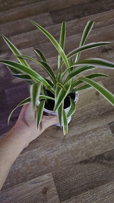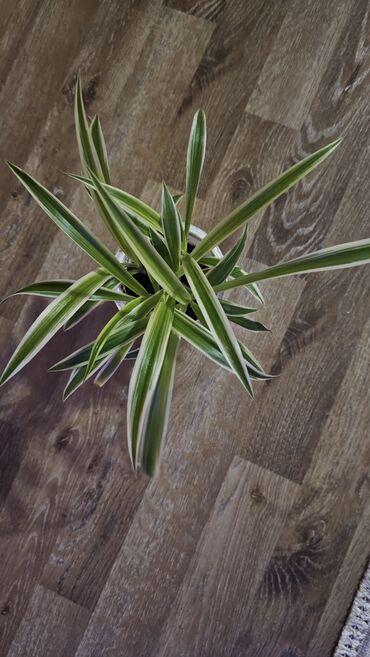 Комнатные растения в горшках. 1) Хлорофитум «Кёрли» (Chlorophytum