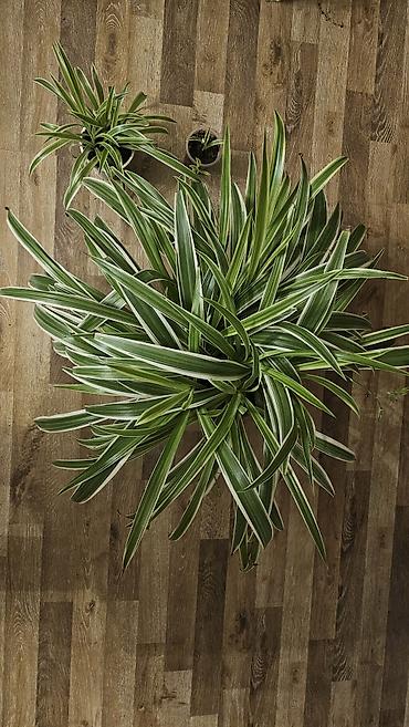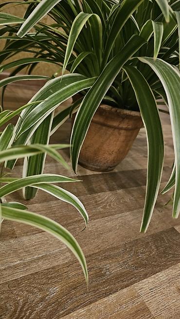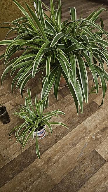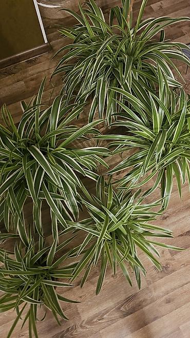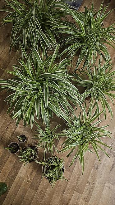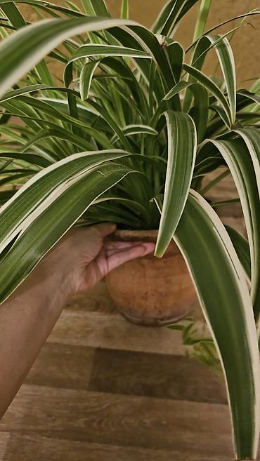 Комнатные растения в горшках. 1) Хлорофитум «Кёрли» (Chlorophytum