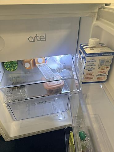 - Внутри: 2 прозрачные полки из прочного пластика, ящик для овощей/фруктов, дверные балконы для бутылок и упаковок, верхняя полка под молочные продукты/соусы