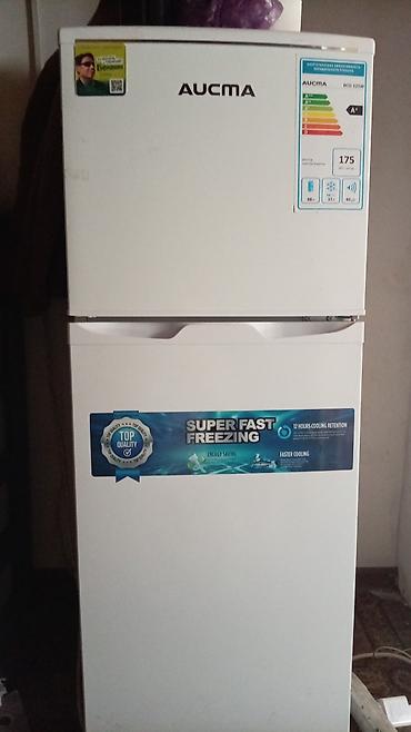 - Холодильник AUCMА, двухкамерный, верхняя морозильная камера. На двери стикер Super Fast Freezing: ускоренное замораживание, сохранение холода до 12 часов, энергосбережение. Класс энергоэффективности по стикеру A+, уровень шума 40 дБ, полезный объём холодильной камеры 175 л (указано на наклейке), расход 0,37 кВт·ч/сутки. Компактный корпус, раздельные двери, удобная ручка-ниша.