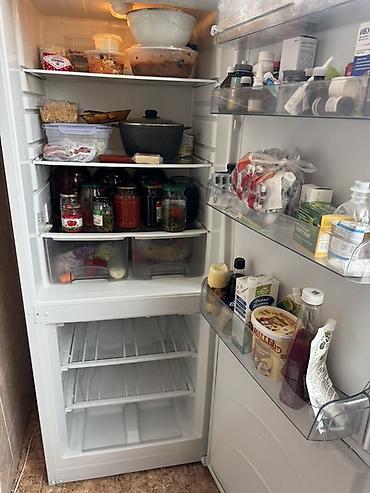 - Холодильное отделение: 4 прочные стеклянные полки, два прозрачных ящика для овощей и фруктов, внутреннее освещение, регулируемые полки на двери (вмещают бутылки, соусы и мелкие упаковки).
