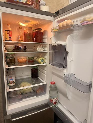 - Холодильное отделение: 3 полки из закалённого стекла, ящик для овощей и фруктов, внутренняя подсветка, полки на двери для бутылок, яиц и мелочей.