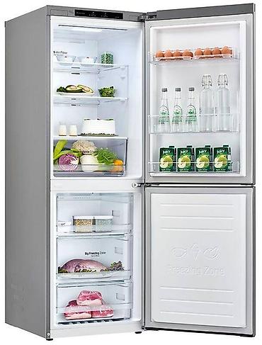 Двухкамерный холодильник LG с нижней морозильной камерой, корпус цвет нержавеющей стали.