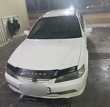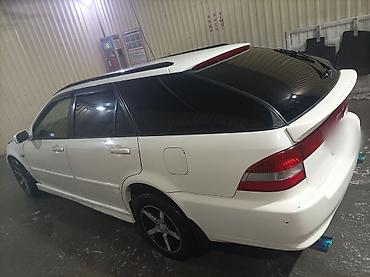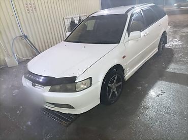 Honda Accord Wagon (универсал),машина без вложений правый руль. Белый цвет, черная тонировка задней части, рейлинги на крыше, спойлер. Передний дефлектор капота с надписью Accord. Литые диски черного цвета, низкопрофильные шины. Брызговики, пластиковые накладки/юбки по периметру. Два выпускных насадка «хамелеон». Задний стеклоочиститель, высоко расположенный стоп-сигнал, повторители в задних фонарях.
