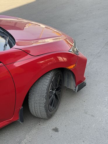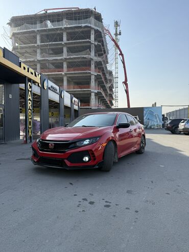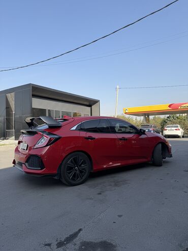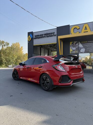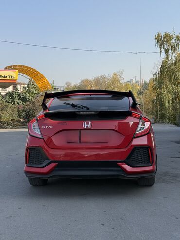 Honda Civic хэтчбек (поколение 10) в ярко‑красном цвете с агрессивным спортивным обвесом.