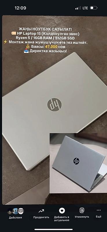 HP Laptop 15 - Процессор: AMD Ryzen 5 - Оперативная память: 16 ГБ