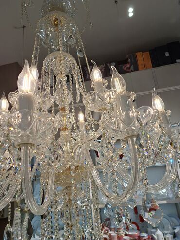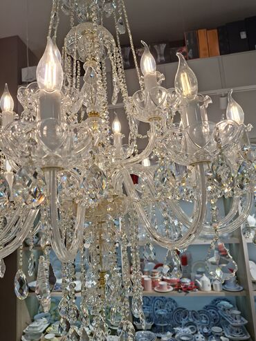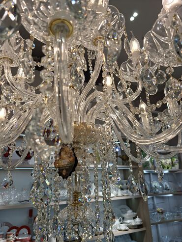 Новый,Чешская Хрустальная люстра 5 рожковая, выполненная в классическом стиле, придаст изысканность любому интерьеру. Люстра оснащена прозрачными стеклянными элементами, которые преломляют свет, создавая красивое сияние. Золотистые металлические детали дополняют дизайн, подчеркивая элегантность изделия. Открытые лампы-свечи, расположенные по периметру, обеспечивают достаточное освещение. Каждая лампа окружена декоративными стеклянными чашами и подвесками, добавляющими блеск и шарм. Эта люстра подходит для гостиных, столовых и других помещений, где требуется центральное освещение с акцентом на стиль.