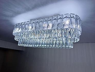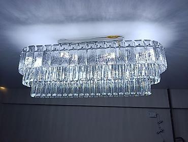 Новый новый Потолочная люстра с прямоугольным корпусом, украшенная многочисленными прямоугольными и квадратными хрустальными элементами, расположенными в три яруса. Эффектный дизайн, создающий яркое освещение и рассеянный свет за счет граней хрусталя. Идеально подходит для гостиных, столовых или больших холлов, придавая интерьеру элегантность и роскошь. Может использоваться как центральный источник света в просторных помещениях !!