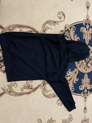 Толстовка-худи унисекс, темно-синяя. - Материал: плотный трикотаж на флисе (мягкая изнанка, сохраняет тепло). - Крой: свободный, с капюшоном на шнурках и большим кенгуру‑карманом спереди. - Манжет...