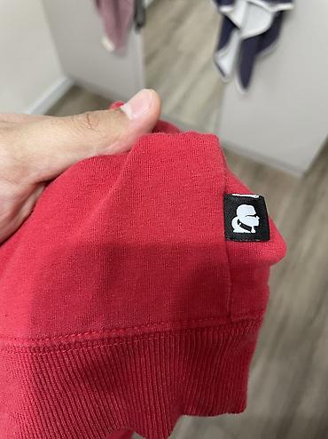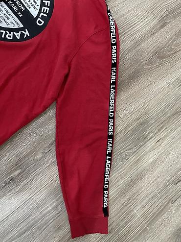 Стильное фирменное худи премиального бренда KARL LAGERFELD. Яркий красный цвет — привлекает внимание и выделяет из толпы. На груди крупный фирменный принт с логотипом бренда, на рукавах брендированные ленты.