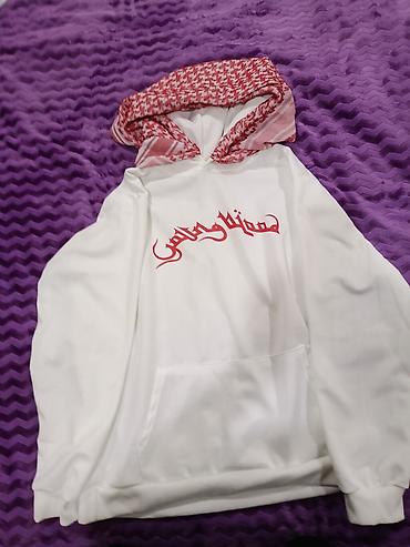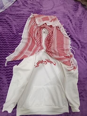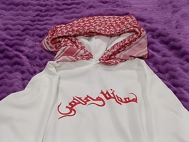 - Принт: крупная надпись красным шрифтом в арабском стиле на груди