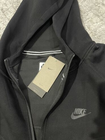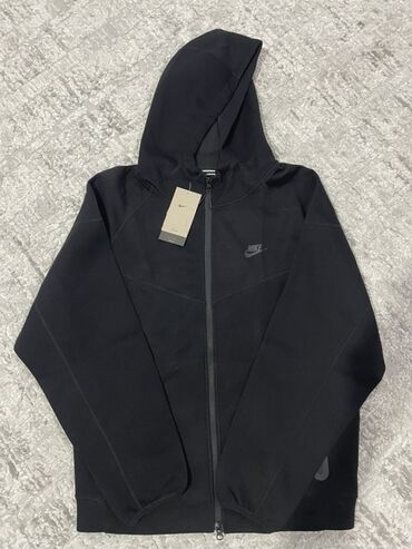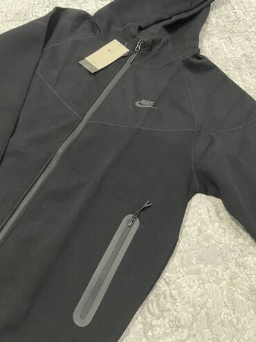 Черная Nike Tech Fleece молнией по всей длине и капюшоном.