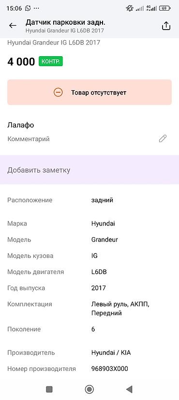 Датчик парковки (парктроник) задний для Hyundai Grandeur IG, двигатель L6DB, год 2017. Оригинал Hyundai/KIA. Номер производителя: 968903X000.