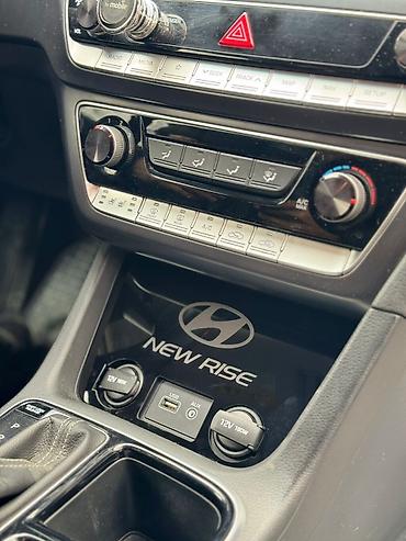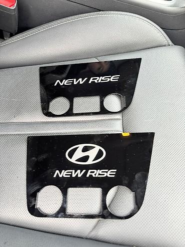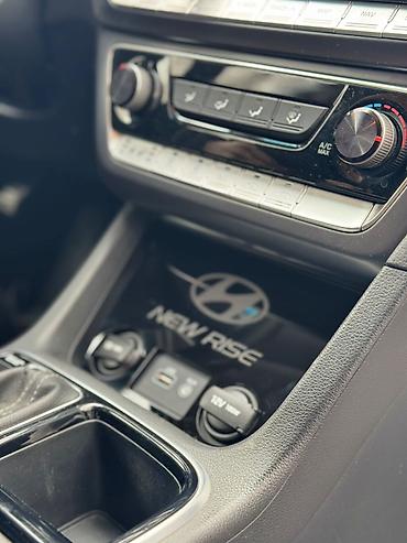 Автомобиль Hyundai в рулевым колесом, современной мультимедийной системой с сенсорным дисплеем и системой климат-контроля. Задние сиденья имеют дополнительную накладку с ромбовидной прострочкой д...