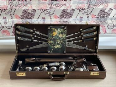 Подарочный набор для пикника/шашлыка в чемодане. Состав: - Прочный кейс под «кожу» с ручкой и металлическими замками - 6 шампуров с витым прутком и массивными лакированными деревянными рукоятками,...