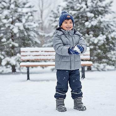 Детский зимний комбинезон - Цельная модель с капюшоном, застёжка-молния по центру до подбородка - Тёплый, объёмный утеплённый слой; подходит для прогулок в снегу - Ветро- и влагозащитная верхняя т...
