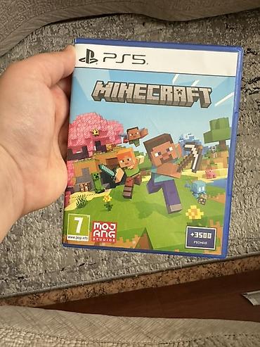 Видеоигра Minecraft для игровой консоли PlayStation 5. Обложка диска содержит узнаваемых персонажей и элементы игрового мира, включая значок Mojang Studios. Игра подходит для широкой аудитории игро...