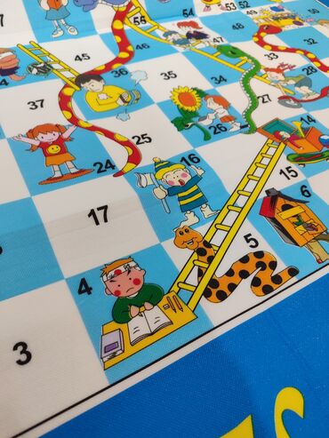 Особенности товара: можно играть всей семьёй на лёгком большом термоковрике, лестницы - подъем вверх, змеи - спуск вниз по клеткам, ходим бросая кубик👍