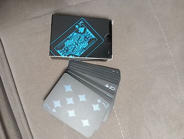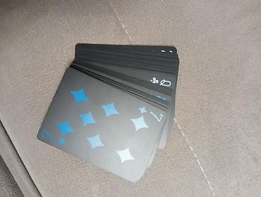 - Дизайн: матово‑черные карты с минималистичными голубыми мастями и индексами; фигурные карты и лицевые элементы выдержаны в единой неон‑голубой гамме.