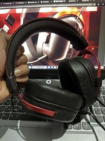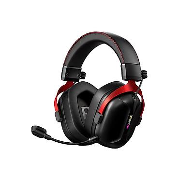Подходит для шутеров, MOBA и общения: мощный бас, хорошая шумоизоляция амбушюр и удобная посадка. Цвет: чёрный с красными элементами.