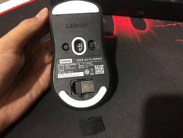 - На днище размещены: логотип Legion, техническая информация Lenovo, тумблер On/Off, кнопка переключения 2.4G/Off, окно сенсора, отсек под донгл с крышкой.