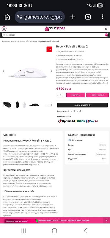 Scyrox V6 (б/у, состояние хорошее) Вес: ~40 г (очень лёгкая). Сенсор: PixArt PAW3950 до ~30 000 DPI (точный для игр). Polling rate: до 8000 Hz (быстрая реакция). Подключение: беспроводной 2....