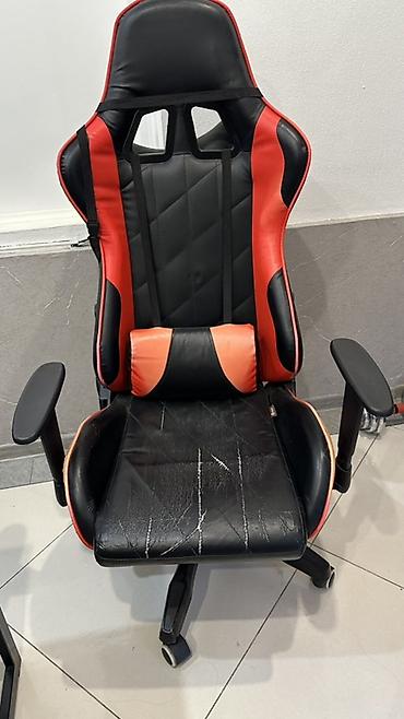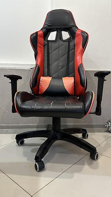 Игровое кресло, Б/у, С колесиками, цвет - Красный, Экокожа