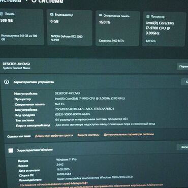 Компьютер, ядер - 8, ОЗУ 16 ГБ, Игровой, Б/у, Intel Core i7, NVIDIA GeForce RTX 2080 Super, SSD