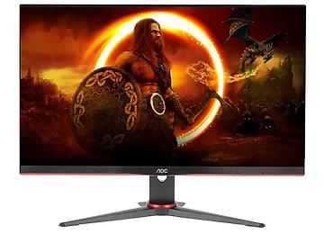Игровой монитор AOC 27" (серия с тонкими рамками) - Плоская панель с матовым покрытием, логотип AOC на нижней рамке - 27 дюйм", формат 16:9 - Подключения: HDMI (кабель на фото), возможно DisplayPo...