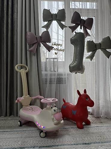 Машинка на прогулку с музыкой от 1 годика до 4х лет в комплекте маленкая сумочка и толкач купили 2 недели назад использовали только дома и ослик резиновый состояния оба 10/10 причина продажи ребенок в нём не играет и шарики на 1 год в подарок🎁