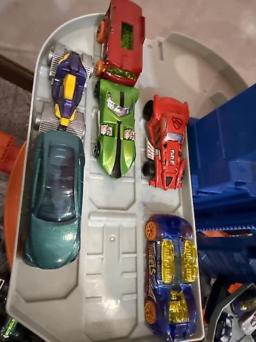 Идея набора: хранение коллекции + гонки по спускам и быстрые перестановки машин между уровнями и транспортером. Отлично подойдёт для свободной игры, соревнований и расширения существующей коллекции Hot Wheels.